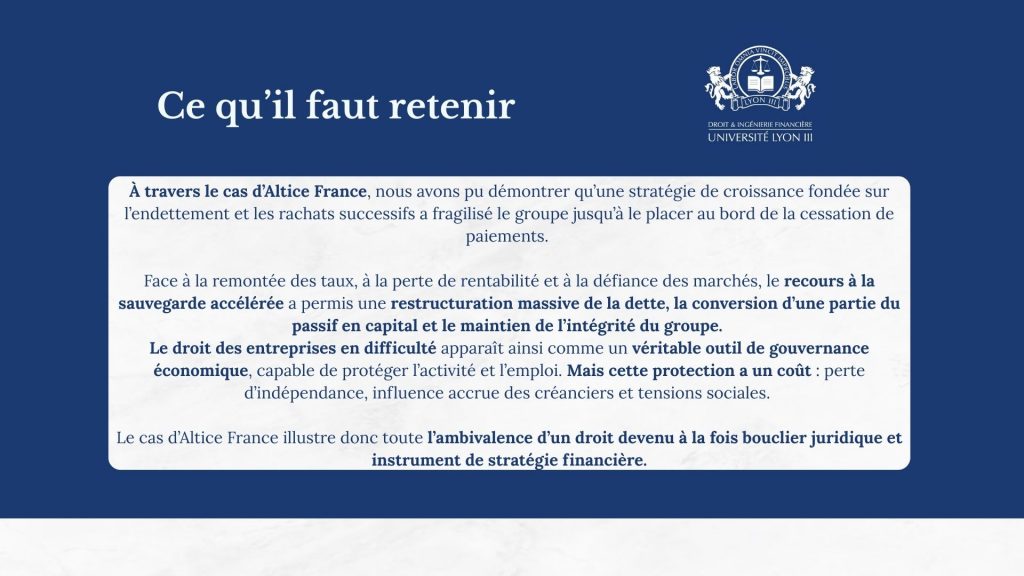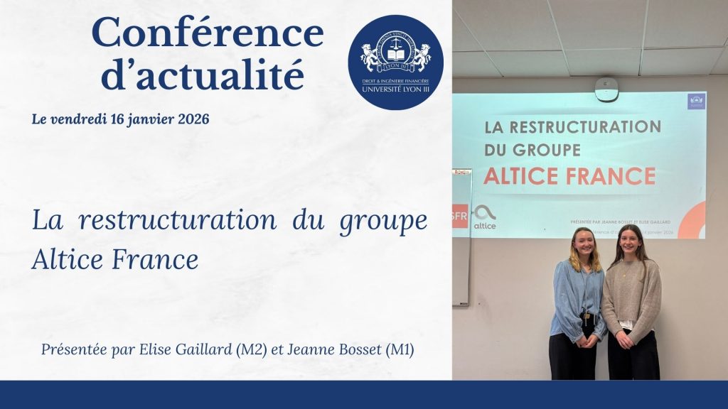 - Élise Gaillard (M2) et Jeanne Bosset (M1) ont ouvert la séance avec une présentation consacrée à la “restructuration du groupe Altice”, en mettant en lumière les enjeux juridiques et financiers liés à cette opération d’envergure.