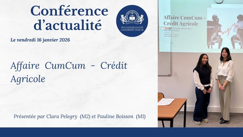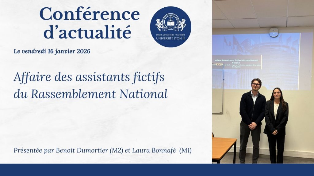 Le vendredi 16 janvier 2026 s’est tenu le troisième rendez-vous des conférences d’actualité, réunissant les étudiants de Master 1 et Master 2 autour de thématiques juridiques et financières au cœur de l’actualité.
