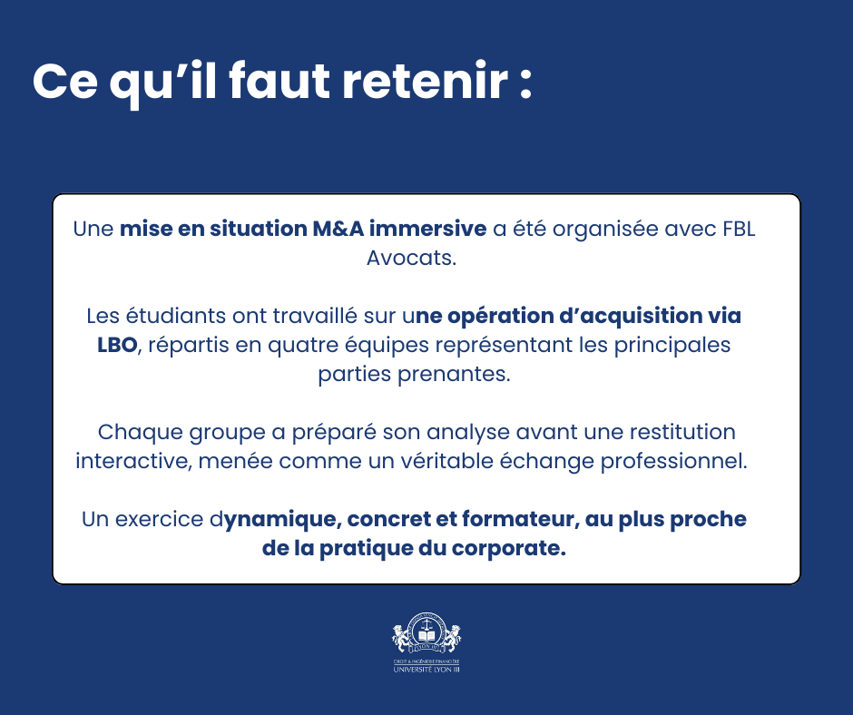Un grand merci à FBL Avocats pour leur disponibilité et la qualité de cet exercice immersif, ainsi qu’à l’ensemble des étudiants pour leur engagement exemplaire.
