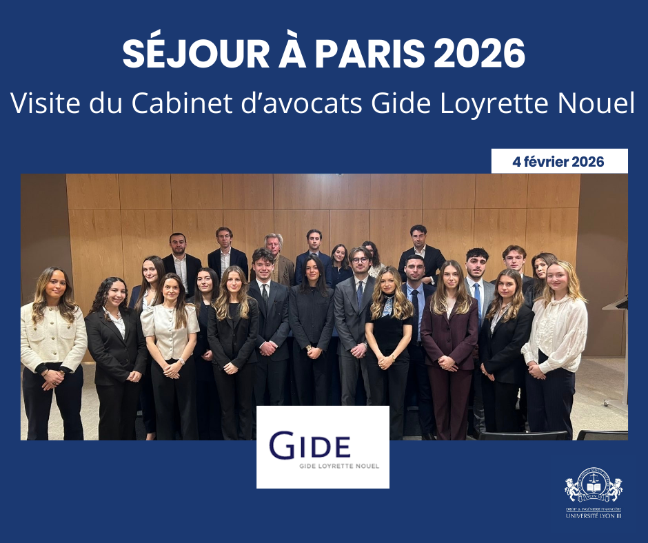 Les étudiants du Master Droit et Ingénierie Financière ont été accueillis le mercredi 4 février dans les locaux du cabinet Gide Loyrette Nouel pour une rencontre immersive avec plusieurs praticiens représentant les principales expertises du cabinet.
