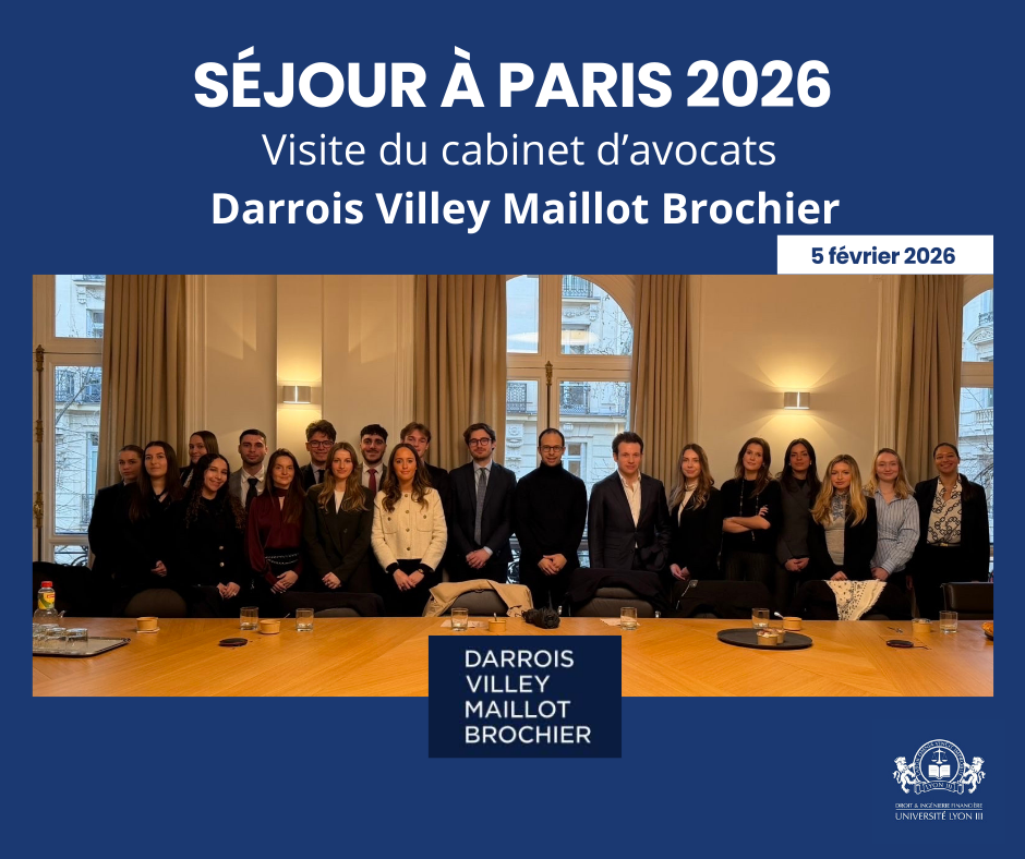 Dans le cadre de leur séjour à Paris, les étudiants du Master 2 DIF ont été accueillis le jeudi 5 février au sein du cabinet Darrois Villey Maillot Brochier, cabinet de référence du barreau de Paris reconnu pour son excellence et son expertise dans les opérations complexes à dimension nationale et internationale.