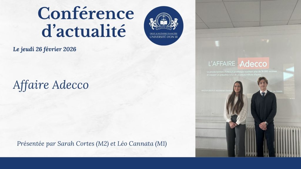 Le 26 février 2026, la quatrième séance des conférences d’actualité a réuni les étudiants de Master 1 et Master 2 autour de sujets juridiques et financiers marquants du moment. Les conférences se sont déroulées selon l’ordre suivant :