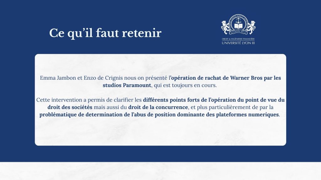 - Emma Jambon (M2) et Enzo De Crignis (M1) : « Le rachat de Warner Bros »