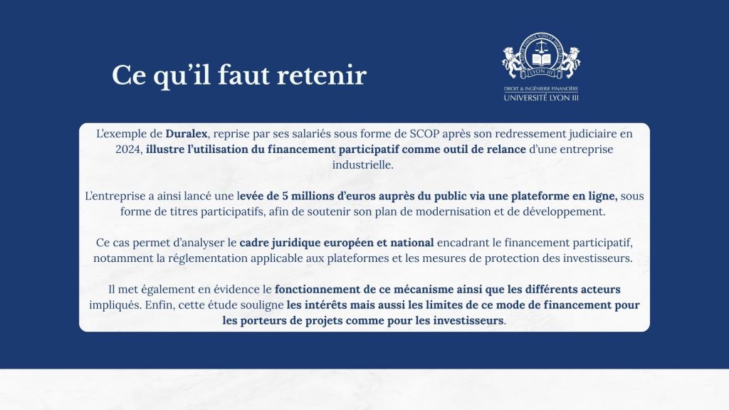 - Jade Bourgeon (M2) et Maëlys Lamy (M1) : « Le financement participatif de Duralex »