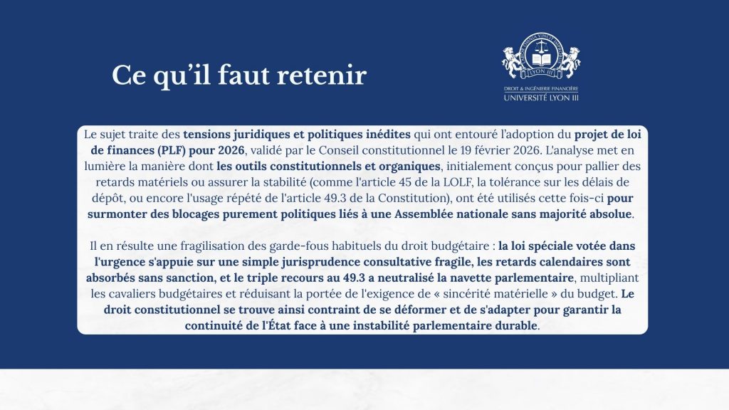 - Diogo Pereira (M2) et François Guillet-Belaud (M1) : « Projet de loi de finances 2026 »